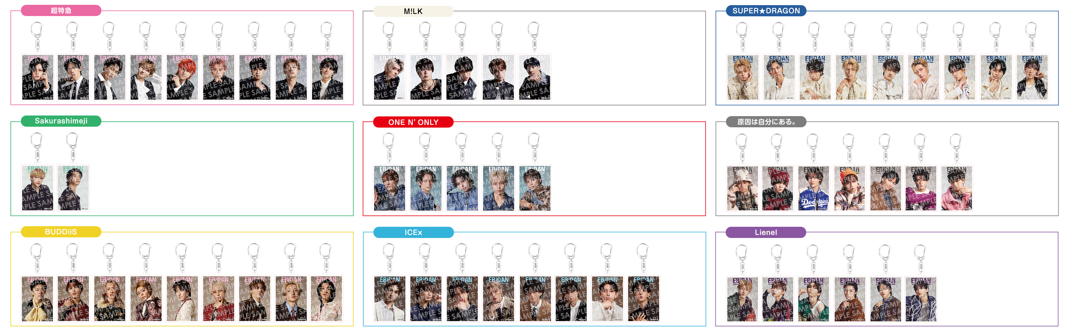選択いただいた『EBiDAN Visual Dictionary 2026』COVERのグループのアクリルキーホルダーが付きます。